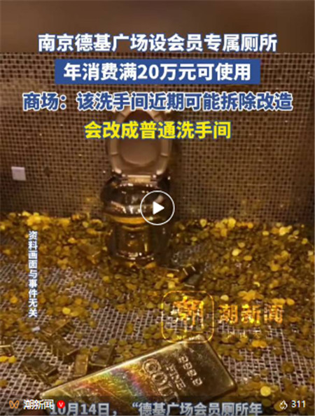 | 南京德基广场回应“年消费20万可用会员专属厕所” |