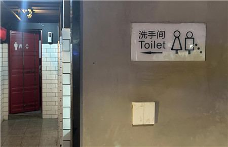 这是11月5日在广西河池市一家商场拍摄的卫生间标识。此处原本只有图形和英文,经顾客反映,商场管理方补充张贴了汉字标注。