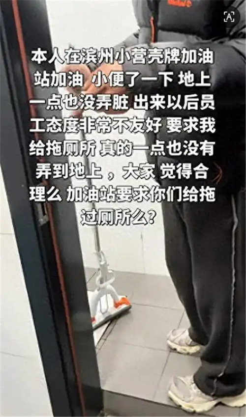 顾客在壳牌加油站上厕所,被工作人员递拖把要求打扫卫生?