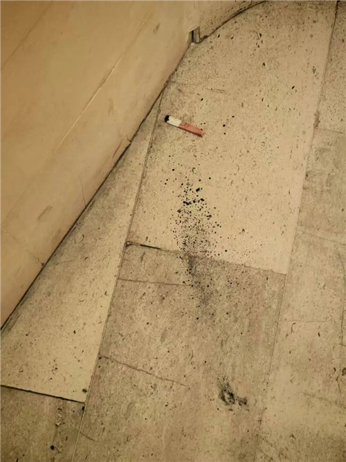 离三里屯不远的朝阳门,银河soho同样标明禁止吸烟,而且在楼宇外的中心广场设置了吸烟区。购物中心内,保洁员和扫地机器人保持着室内环境的整洁。但记者刚走到一处卫生间外的拐角处,就闻到飘来的烟味。走近一看,有人深吸一口、扔掉烟头、踩上一脚,头也不回地带着烟雾扬长而去……