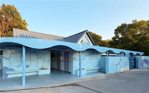 在城市,针对轨道交通11号线南翔、马陆、嘉定新城等重点站点人流量大、如厕需求突出的痛点,上海轨交开展公厕新增与升级改造行动。改造坚持“以人为本、因地制宜”原则,嘉定新城站在收费区内增设标识清晰、整洁明亮的公厕,直接满足换乘乘客需求;马陆站调整安检区域,将公厕迁移至入站闸机旁,提升便捷度;嘉定西站结合空间特点优化厕位布局,减少对乘客通行影响。同时,所有新公厕均配备手机放置台、安全扶手、感应式洗手液设备,新增的第三卫生间覆盖亲子、老年及残障人士需求,有效破解“如厕难”问题。在农村,公厕改造成为助力文旅发展、补齐乡村公共服务短板的关键举措。赵家村作为“苏州河第一村”,将原有近20年历史、设施破损的砖瓦结构公厕升级为集颜值、实用与文化内涵于一体的“水经公厕”,以蓝白色马赛克勾勒苏州河蜿蜒形态,搭配水纹波浪形屋檐,让地域文化融入建筑风貌;功能上增设儿童专用坐便器、母婴护理台、无障碍通道及紧急呼叫按钮等设施,全方位覆盖特殊群体需求。