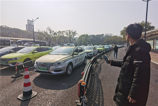 大年初二上午,上海南站南广场出租车候客区不时响起“嗒嗒”的声音。