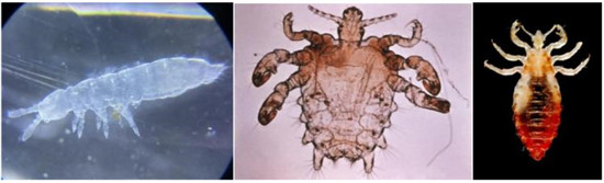 从左到右依次为无尾弹尾虫、阴虱、人虱