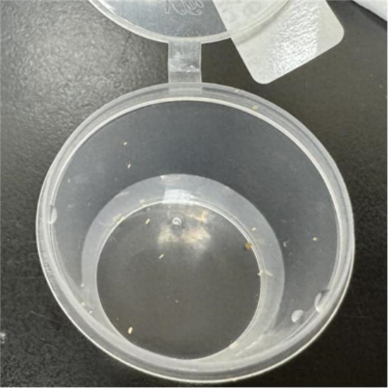 检验科医生立刻上手检查,把盒子里的几只虫子挑出来,放在滴了生理盐水的玻片上观察。肉眼看这些虫子,长度为2~3毫米,又在400倍显微镜下仔细看了虫体细节。
